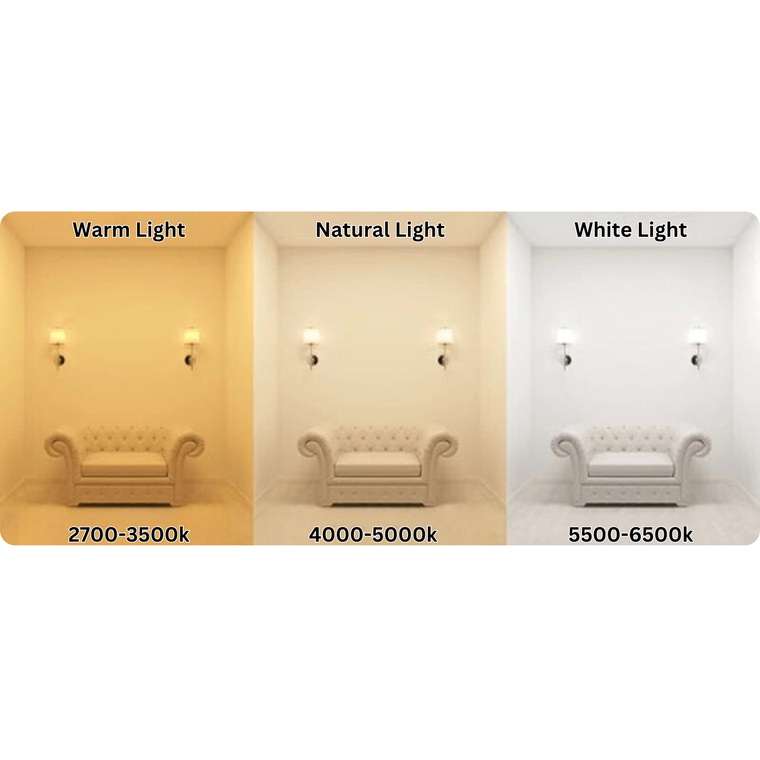 Light source types: LED bulbs, incandescent bulbs, energy-saving bulbs, CFL bulbs.