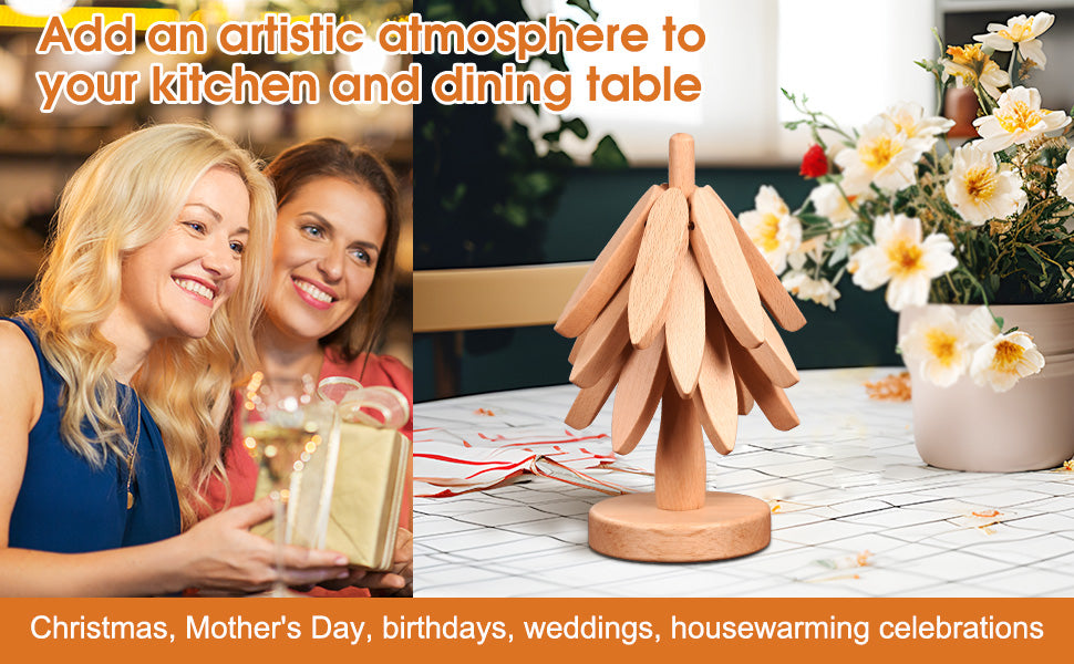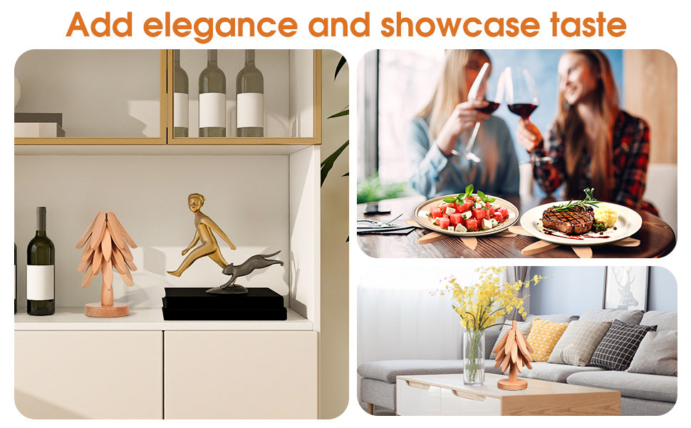 - Wooden Star Coaster set for hot dishes unfolds 7.8 inches, can put cups, bowls, plates, teapots, frying pans, hot pots, etc. Can be used for different textures of countertops such as glass, marble, wood, etc., and can be placed in the kitchen, living room, dining room, etc.